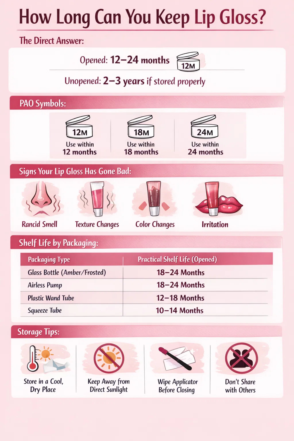 Glossae super basium polybutenam vel dimethicone positae tendunt magis oxidationis repugnare quam bases olei naturales. Polybutene — frequentissima glossa labrum turpia ingrediens in amet producta — valde stabilis est, et non rancidum in via plantae olea faciunt. Glossa norma polybutena-substructio in tuto collocari potest et textura pro plena 18 ad 24 menses sui PAO, praesertim cum reposita in a. medicamine vitrum utrem vel similiter vas bene signatum.